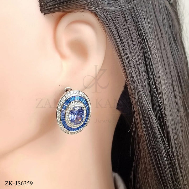 Handcrafted silver plated pendant alongside earrings studded with sapphire and zircons.