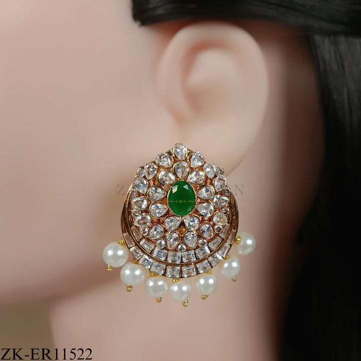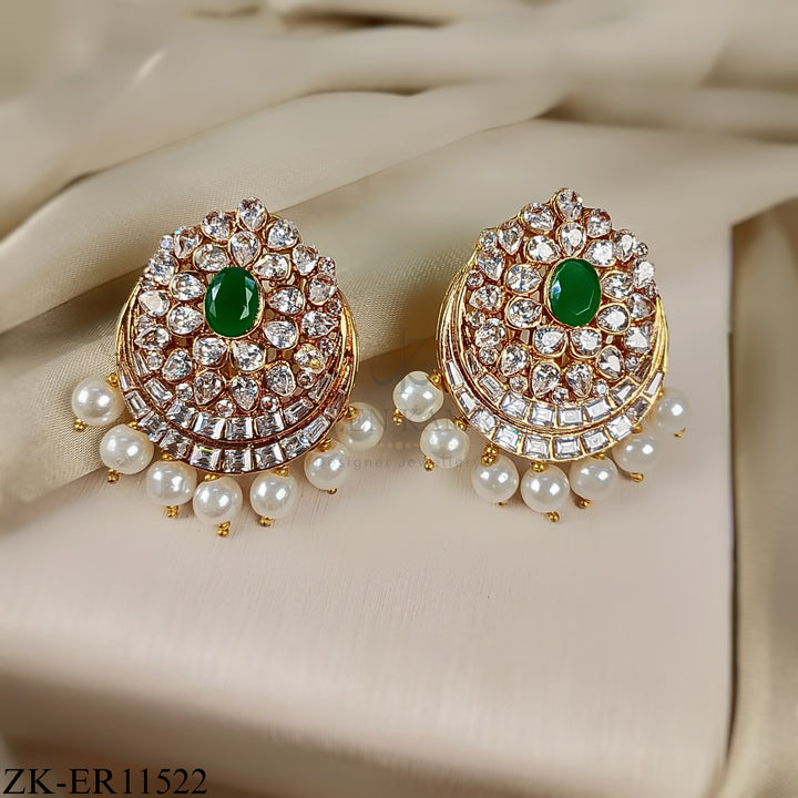 Handcrafted 22k gold plated earrings adorned with Sheesh, emerald and pearls.