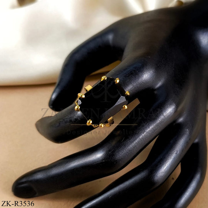 Handcrafted 22k gold plated ring studded with black onyx.