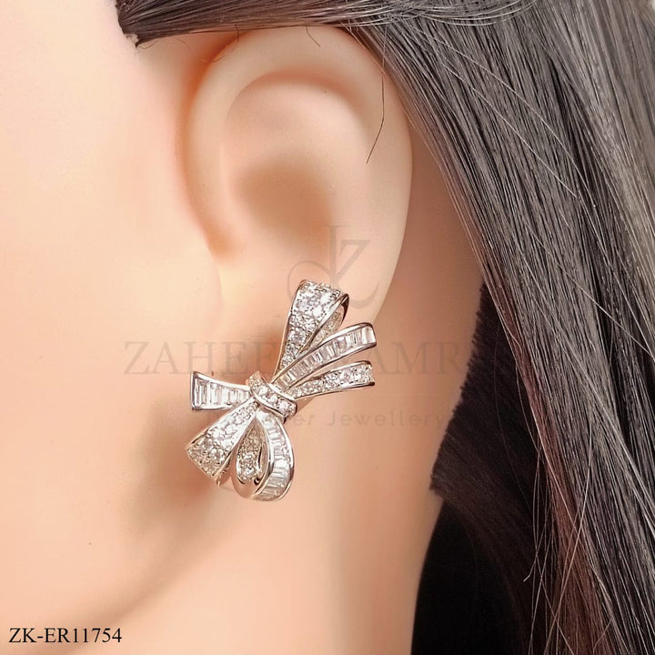 Handcrafted silver plated earrings studded with zircons.